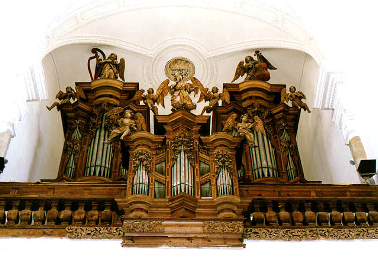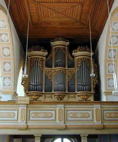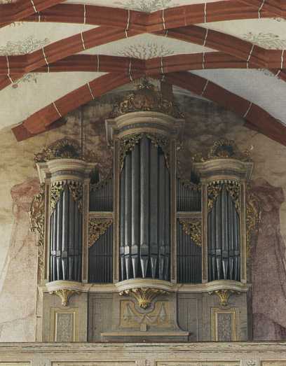 The baroque instrument inside the church has been built in 1747/48 by Johann Adam Ehrlich (1703-1784) and is the only completely preseved instrument of this famous organ builder, who was not only the founder of a whole dynasty of more than 18 organ and instrument builders, but is also often called the southern German Silbermann because of the exquisite tonal quality and the high-grade coverage type of his works.