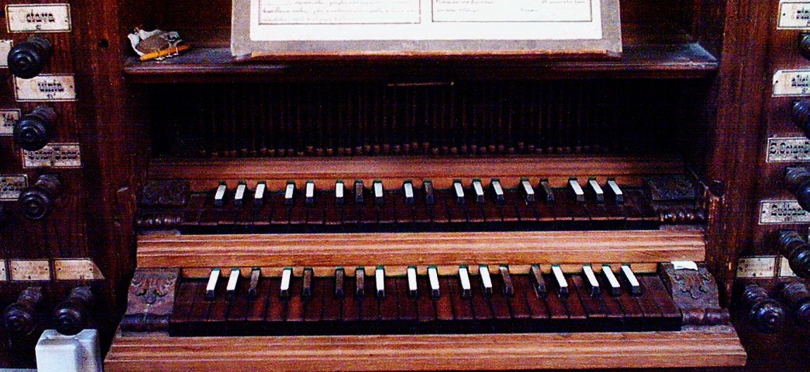 By the end of XVIth century, the Italian organ assumed the stable form which persisted through the next two centuries. Usually, it had one manual with very primitive pull-down pedal. The basis of the organ was formed by the full "pyramid" of the principal chorus, separating each rank even in the highest registers. Therefore, there is no "mixture" stop found on traditional Italian organ. Instead, the brilliant "crown" of the organ sound is formed by individual principal ranks with the latin names designating their height (15th, 19th, 22nd, 26th, 29th...). As the Italian organbuilders did not build very small pipes, the stops usually break at the 1/8' of the pipe length, sometimes even lower, making an octave repetitions. Therefore, the plenum is dominated by the 2' and 2 2/3' sound, giving a "golden" timbre (while the German type of the organ plenum could be described as "silver").