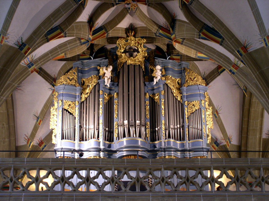 Most interesting is the fact that right next to this instrument, in the Dominican church, one can find the other important Adam Ehrlich organ - a 32 stop instrument that was completed in 1752 directly after the other one. While the 1748 organ possesses a typically baroque disposition according to the southern and middle German tradition of the 17th and early 18th century, the 1752 instrument combines these traditions with the upcoming interest in emotionalism.
