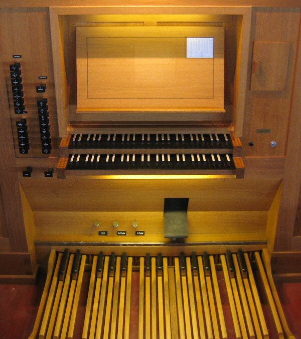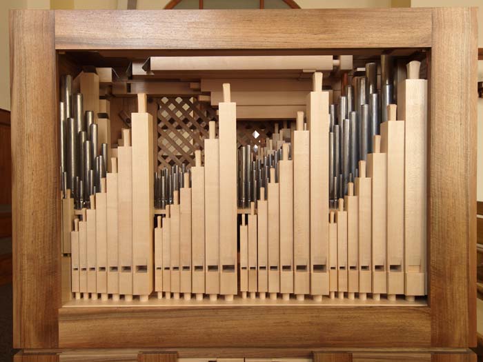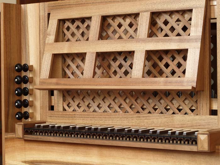 This organ is a composite instrument, based primarily on the organ at Little Waldingfield, but with additional ranks from Groton as well as other sources.