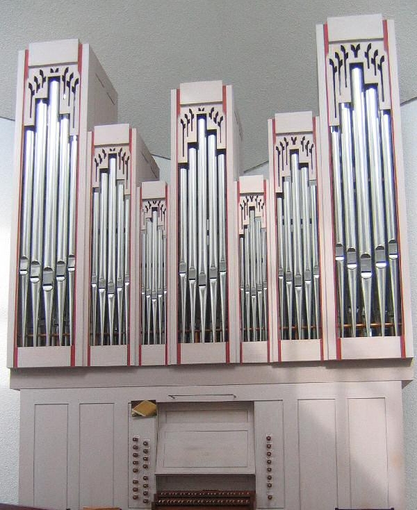 chamber organ from the workshop of Daniel Prib from Prague, Czech Republic. This organ was conceived as a solo concert instrument. The scaling of the voices was optimized for larger churches while the ease of transport had to be maintained.The construction of the organ was finished in August 2007. It has 5 speaking stops: