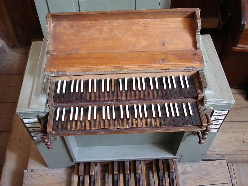 The pedal division offers one curiosity which is sometimes observed in the Czech Baroque organs. In the upper octave, the semitones play the lower octave as they are missing there because of the short octave mechanism.