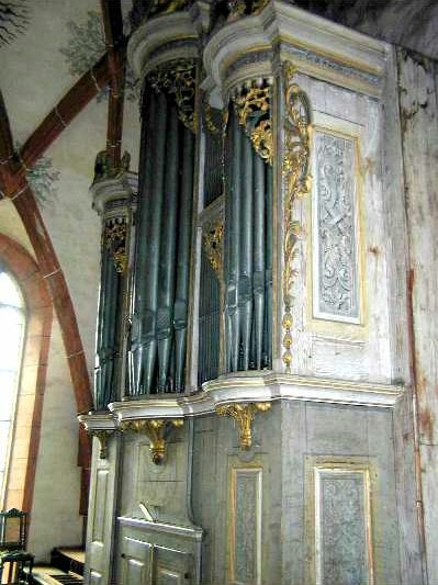 During the 18th century, a positiv organ was added and perhaps the pedal stop could be added at this time as well. The organ case was also newly decorated so that it reflected the style of that age.