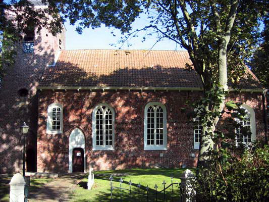 The church in Eenum is one of the oldest baked-brick stone churches in the province of Groningen (in the very north of the Netherlands). It was built in the last quarter of the 12th century. The building is virtually without frill or embelishments. The architectural style is Romanesque in its origin. A number of renovations have taken place over the years. The outer wall on the northern side still has remnants of a window, which still can be seen clearly. The entrance to the church was originally on the western side and this is visible in the tower. An arch of an early Roman entrance can still be seen on the southface. A good observer can see that the large gothic windows were added later. There have been other entrances as well, e.g. one on the north side for the women which has been bricked up but is on the outside still highly visible, and on the southside an entrance for men. This is also the entrance today.
